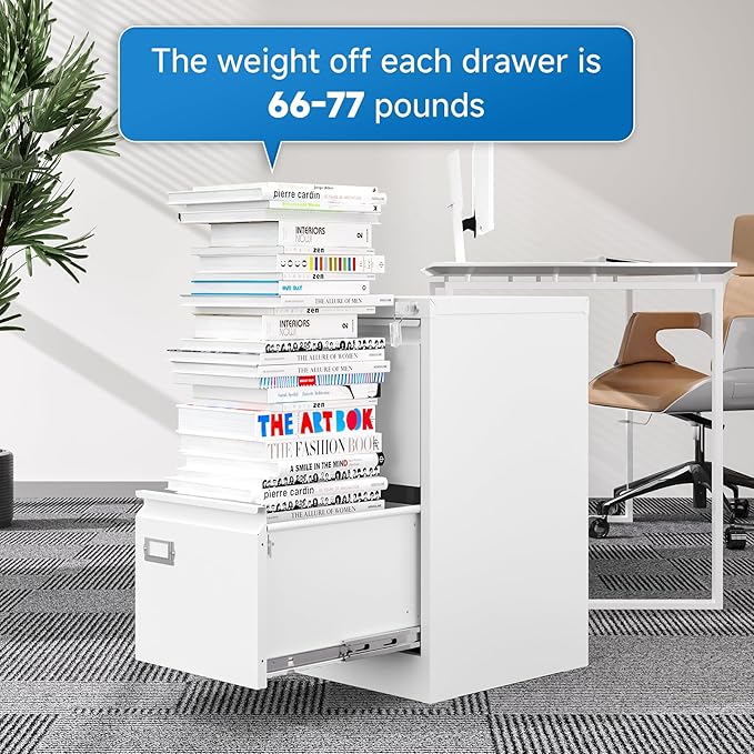 - 【HUMANIZED DESIGN】The steel ball bearing full extension drawer slide is noiseless, will not affect the work of others, and always maintain a quiet environment. The extra-long drawer handle design of the file cabinet makes it more convenient to open the drawer