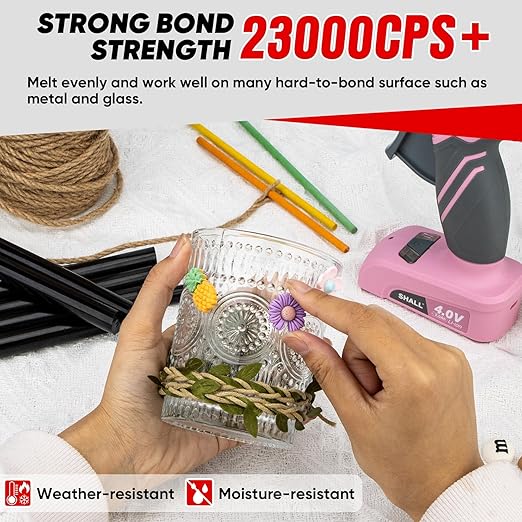 - High Viscosity & Good Flexibility : The craft glue gun sticks are made of flexible EVA resin that provides strong bond strength (23000 CPS +), fast curing speed and toughness, which makes it works well on many hard-to-bond surface such as metal, glasses and plastic