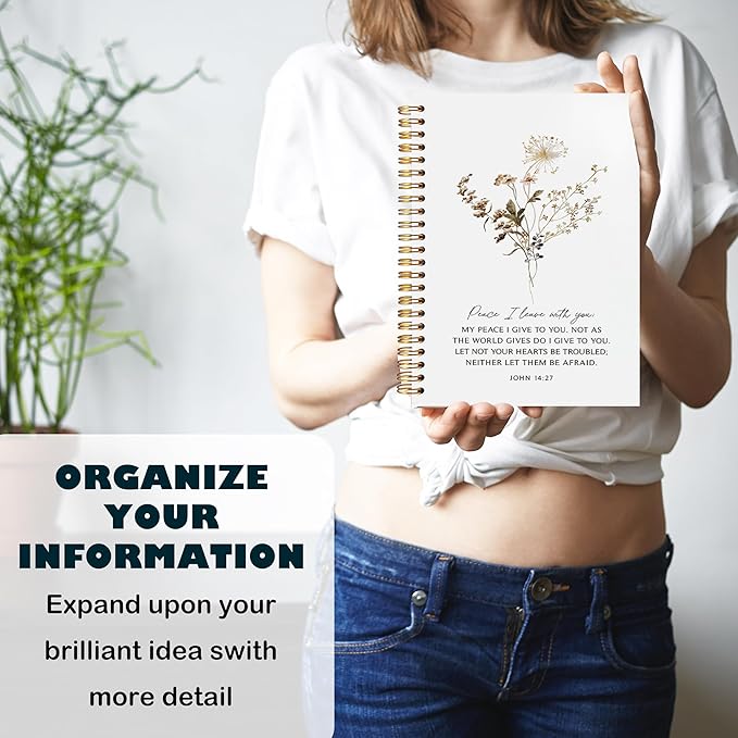 BearCake Peace I Leave with You Floral Christian Notebook Journal, Christian Gifts for Women, Bible Notebooks for Note Taking, Bible Journaling Notebook, Hardcover Spiral Notebook 5.5x8.3