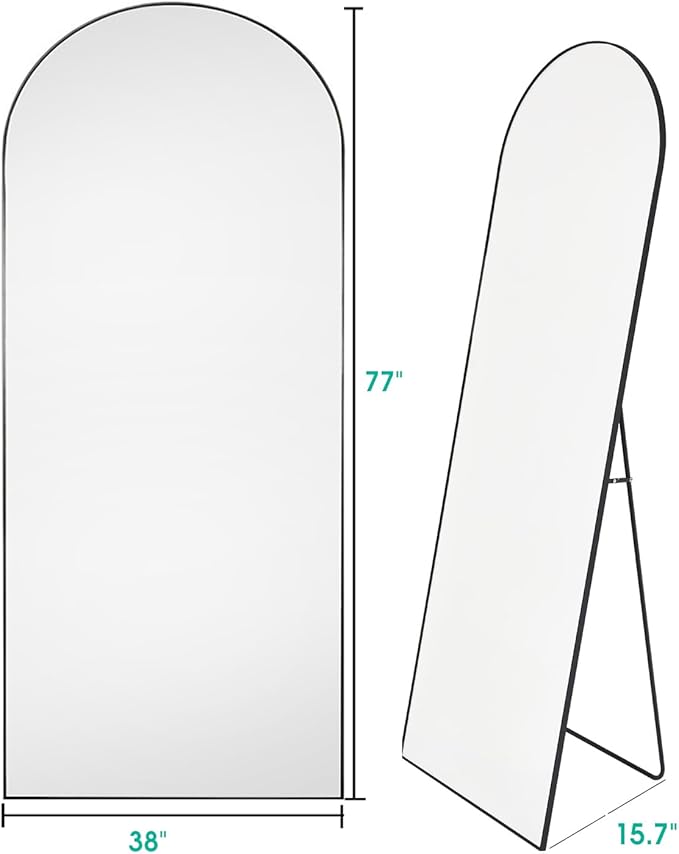 Full Length Mirror, Arched Floor Mirror, 41" x 81" Oversized Full Length Mirror, Freestanding, Full Body Mirror, Arch Mirror Full Length, Wall Mounted Mirror for Bedroom, Black