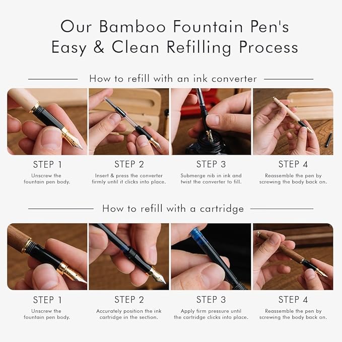 - ✒️Balanced Design And Beautifully Crafted - Each fountain pen is handcrafted, featuring a solid brass nib, premium bamboo wood, and distinctive detail for modern elegance in writing. This gorgeous pen gives high precision and exceptional writing comfort for every occasion. Wordsworth wooden fountain pens bring modern sensibility to the art of fine writing.