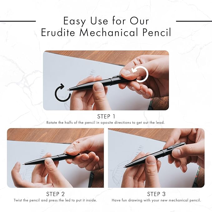 - β HIGH-END PREMIUM PENCIL - The mechanical pencilβs lead requires no sharpening, allowing you to work more efficiently. With a smooth one-push operation, itβs perfect for drafting, technical writing, drawing, or sketching. Ideal for artists, architects, engineers, professionals, teachers, and students alike.
