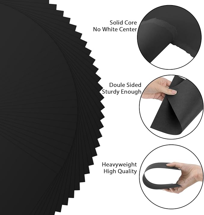 OcePor 50 Sheets Black Cardstock Paper, Colored Printer Paper 8.5 x 11, Card Stock Thick Construction for Craft,Scrapbook,Office Printing, Invitations, Certificates,92 lb/250gsm