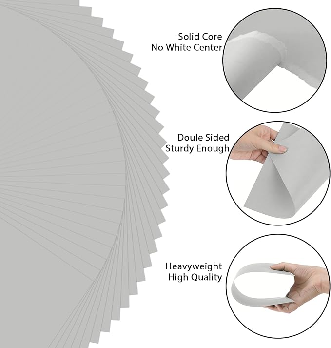 OcePor 50 Sheets Grey Cardstock Paper, Colored Printer Paper 8.5 x 11, Card Stock Thick Construction for Craft,Scrapbook,Office Printing, Invitations, Certificates,92 lb/250gsm