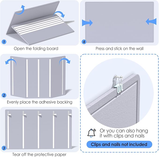 - FOLDING DESIGN: It adopts a 3-fold setting, which is portable and convenient to store without taking up space. The HOOK and LOOP FASTENER BACKING ADHESIVE adhesive design can be removed and displayed on the wall when needed. You can rest assured that the high-density board will not break after multiple tearing tests and no creases after unfolding.