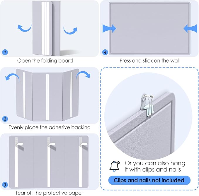 - FOLDING DESIGN: It adopts a 3-fold setting, which is portable and convenient to store without taking up space. The HOOK and LOOP FASTENER BACKING ADHESIVE adhesive design can be removed and displayed on the wall when needed. You can rest assured that the high-density board will not break after multiple tearing tests and no creases after unfolding.