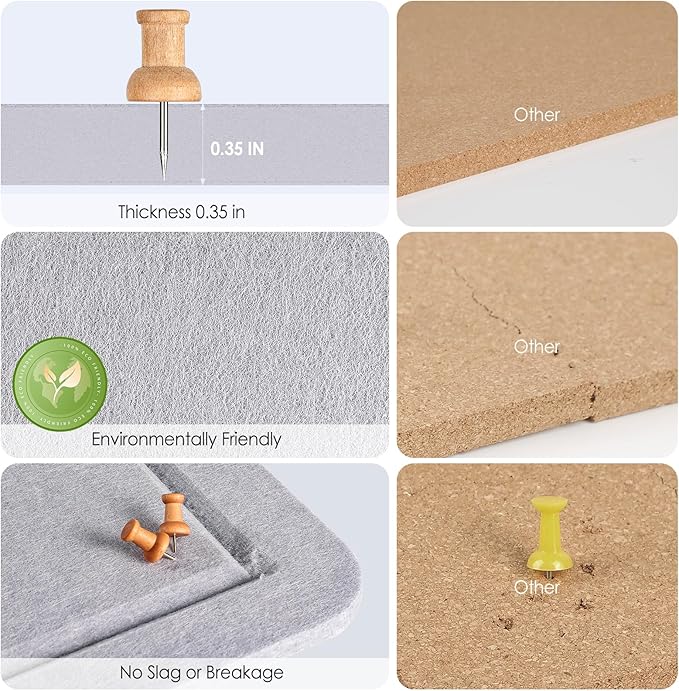 - LARGE FELT BULLETIN BOARD: The panel size is 36" x 24", 0.35" thick high-density felt panel, which can accommodate thumbtacks of multiple sizes, and is more durable than corkboard and will not break or fall apart. (The thumbtacks are inserted at a 45-degree downward angle to increase load-bearing and stability.)