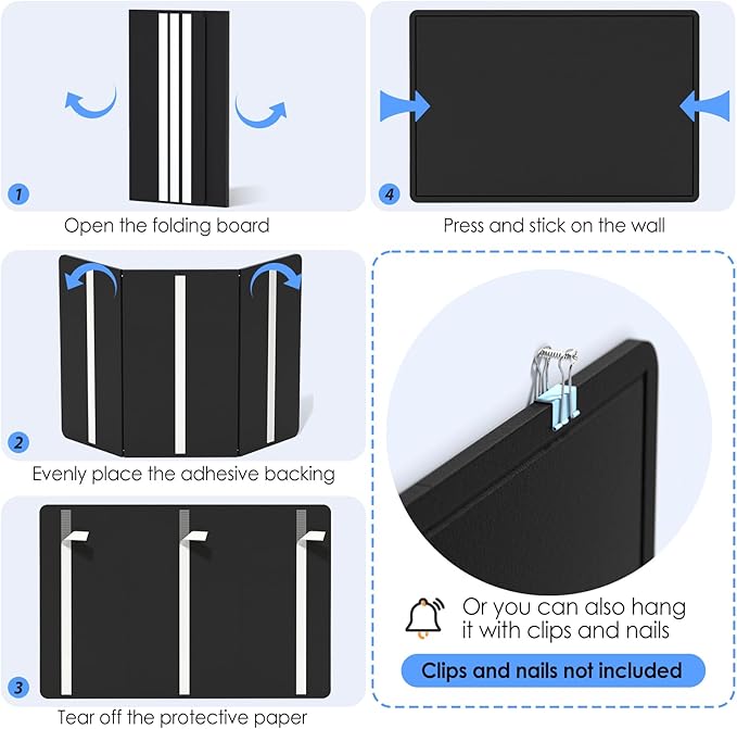 - FOLDING DESIGN: It adopts a 3-fold setting, which is portable and convenient to store without taking up space. The HOOK and LOOP FASTENER BACKING ADHESIVE adhesive design can be removed and displayed on the wall when needed. You can rest assured that the high-density board will not break after multiple tearing tests and no creases after unfolding.