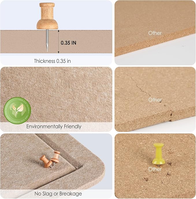 - LARGE FELT BULLETIN BOARD: The panel size is 60" x 36", 0.35" thick high-density felt panel, which can accommodate thumbtacks of multiple sizes, and is more durable than corkboard and will not break or fall apart. (The thumbtacks are inserted at a 45-degree downward angle to increase load-bearing and stability.)