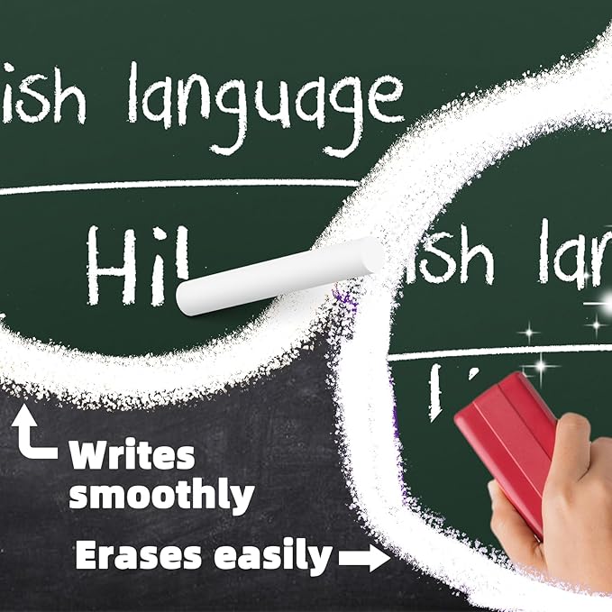 • Easy Write & Erase: The chalk write clearly on a variety of surfaces, including blackboards, whiteboards, kraft paper, sidewalk, ground, ensuring smooth writing and easy cleaning.