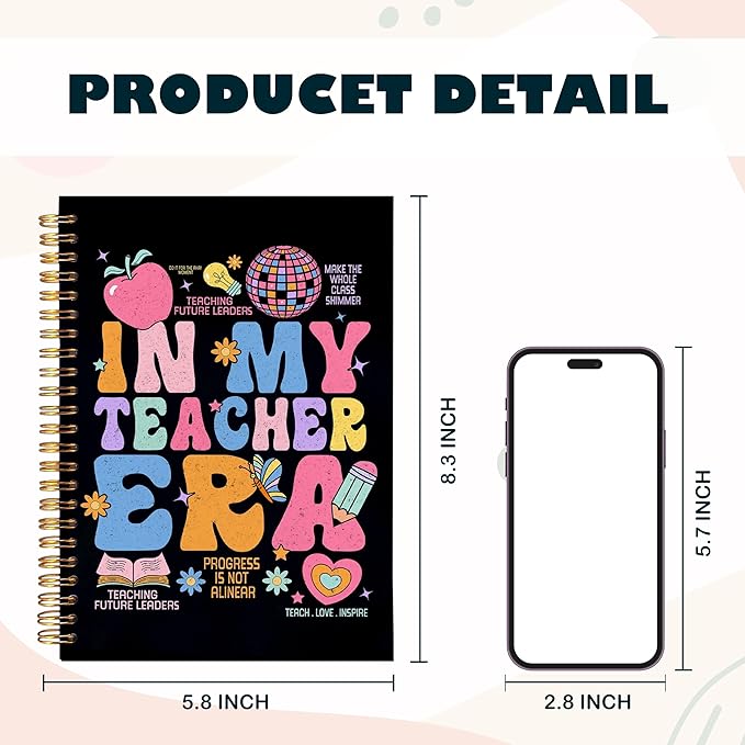 BearCake Teachers Notebooks Journal Gifts for Teachers, Teacher Appreciation Gifts, Thank You Teacher Gifts, Teacher Desk Supplies, in My Teacher Era Hardcover Spiral Notebook 5.5x8.3