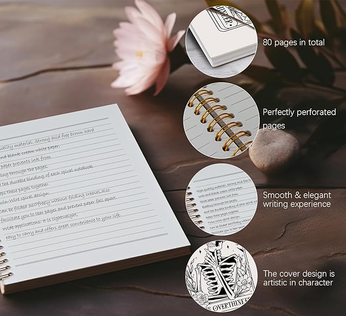 Overthinker Tarot Goth Notebook Journal,Gothic Skull Hardcover College Spiral Notebook Journal for Teen Girls Women,Goth Office Supplies,Hard Cover Journal Notebooks