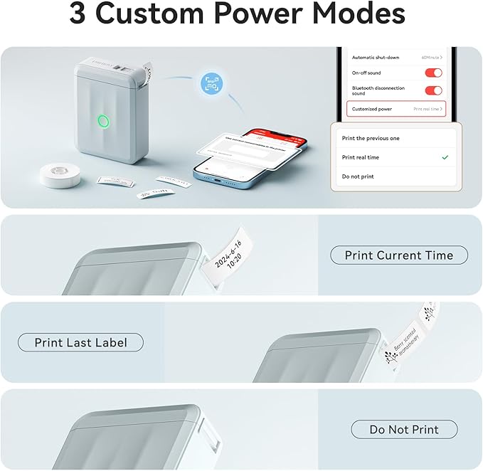 - 【Easy To Use】The bluetooth label maker with tape supports batch printing and wireless connection with ''NIIMBOT'' APP, which is simple setup & installation. No ink or toner required, compatible with IOS & Android smartphones. Fully charged in Only 2 hours with Type-C charging cord. Note: This label maker doesn't work with computers.
