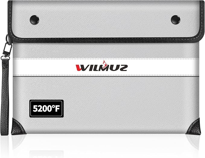 - 🧯【Reliable Material】This Wilmuz fireproof bag uses high-quality fireproof materials. From the outside to the inside, it is composed of eight layers of materials such as glass fiber cloth,heat insulation cotton, and aluminum foil, making it pass Global Flammability Standards (US labs) and Vertical Combustion Testing ( SGS UL94 V-1) certification, enough to withstand high temperature of 5200℉. its edge seams have been strictly waterproofed to withstand high-speed jets of fire hose.
