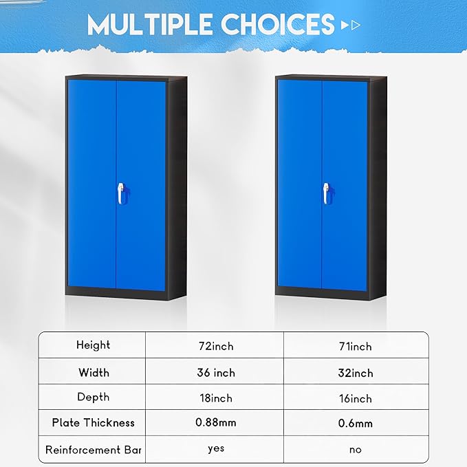 Greenvelly Metal Garage Storage Cabinet,72" Steel Storage Cabinets with Doors and Adjustable Shelves, Metal Tool Cabinets, Locking File Cabinet for Home Office, Garage, School (Black Blue36 Wx18 D)
