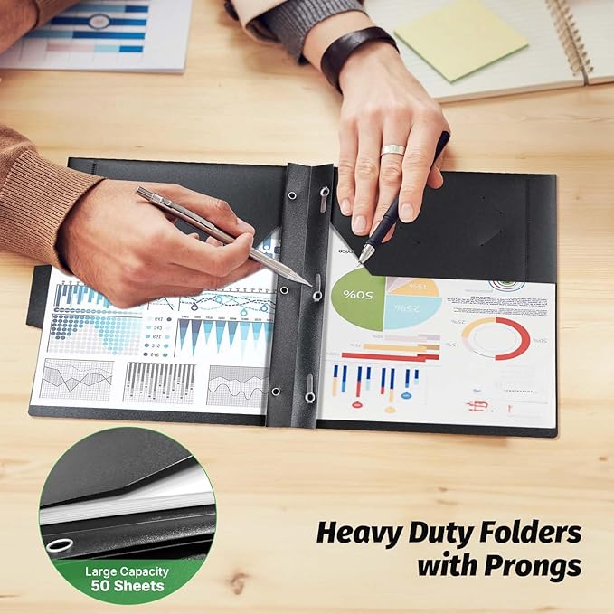 - 【3 PRONG POCKET PAPER FOLDERS】: Each folder comes with two pockets and three prongs that perfectly fit letter-size papers.The pockets are ideal for loose papers, while the prongs keep punched papers neatly in place. Not only provides ample space for storing your documents but also ensures they stay secure.