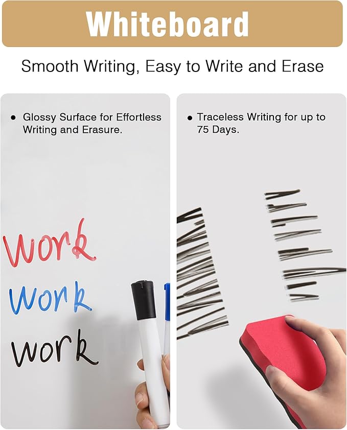 - ๐โใDurable Whiteboard Surfaceใ: The high-quality whiteboard surface allows for repeated writing and erasing, ensuring long-term clarity. Its smooth surface enables easy, ghost-free erasing, keeping your board looking clean and professional.