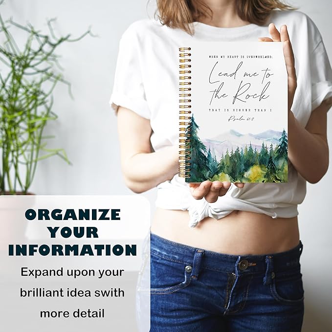 BearCake Christian Notebook Journal, Prayer Journal for Women, Lead Me To the Rock That is Higher Than I Bible Notebooks for Note Taking, Watercolor Woodland Hardcover Spiral Notebook 5.5x8.3