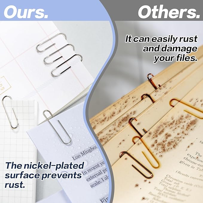 • 【Package Included 300Pcs】- Contains well-packed 3 boxes of jumbo size non-skid paper clips, 100 pcs each.