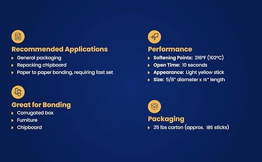 - ✅ Fast Setting: Ideal for high-speed production, these glue sticks set quickly, enhancing productivity in assembly lines and packaging, reducing wait times in warehouses and manufacturing environments.