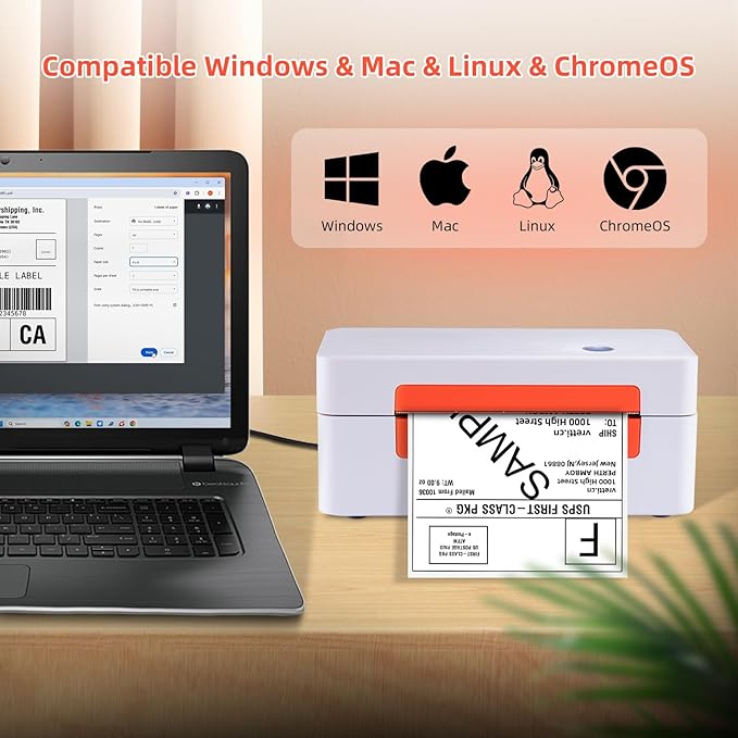 - 【Flexible Platform Compatibility】 This small business label printer is flexible and compatible with multiple platforms and can be compatible with major logistics and e-commerce such as UPS, eBay, Amazon, Shopify, FedEx, DHL and more. It is not only suitable for printing many types of labels such as address, shipping, postage and binding labels, but also supports printing of personalized labels.