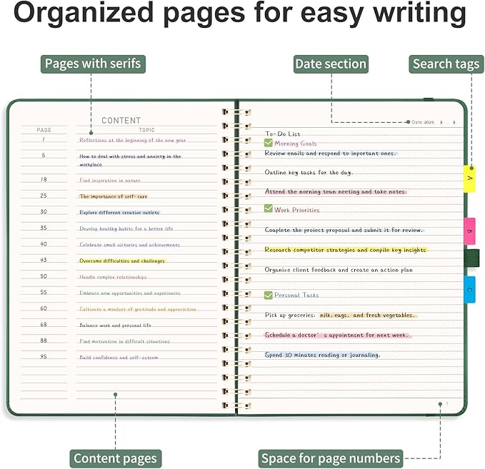 - ORGANIZED AND PRACTICAL NOTEBOOK: Our lined spiral notebook features 110 numbered pages and 4-page blank table of contents. In a large A4 size 8.5" x 11", providing ample writing space while remaining lightweight and easy to carry