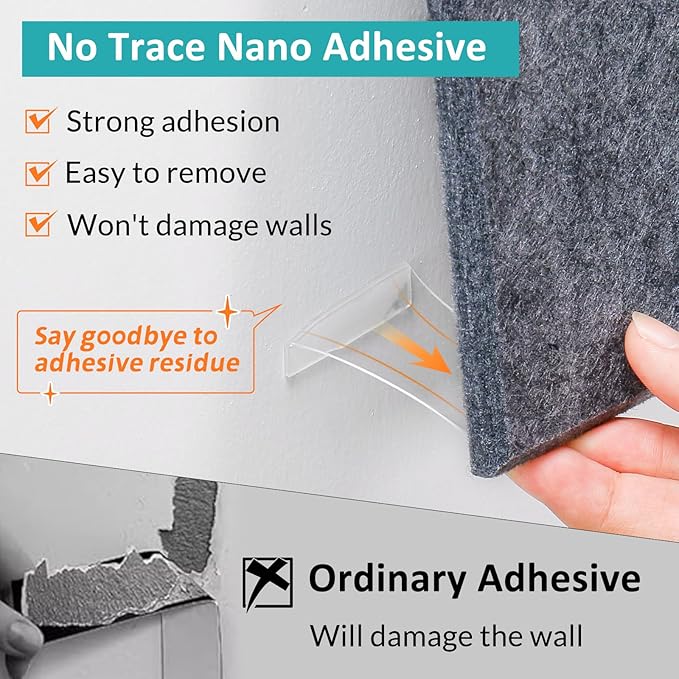 - 【Strong Adhesion & Safe Removal】: Acrylic adhesives with the latest nanotechnology have longer lasting strong adhesion, that prevents the bulletin board from falling off the wall, while being safely removed from the wall without leaving residue or damaging the surface of the wall.