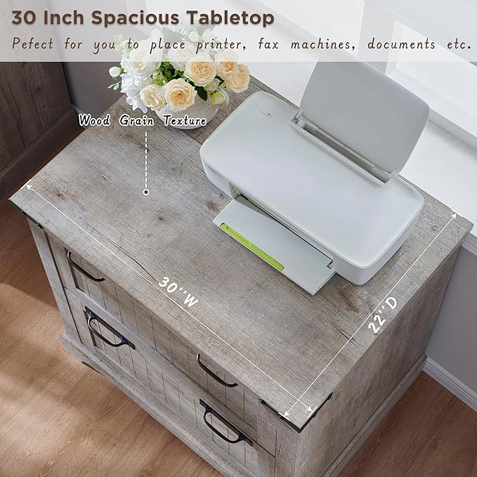 - 30 Inch Spacious DesktopοΌThis office filing cabinet is a powerful assistant for your efficient work. 30 inches spacious desktop has a rustic finish with a delicate touch, being stain-resistant and easy to clean. No matter if you use it intensively for a long time or accidentally cause bumps or water spills, it will always remain aesthetically pleasing and practical.