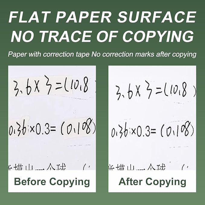 - 【Easy to Use】Simply hold the correction tape at a 45-60 degree angle to the paper surface, press gently and drag the tape back to fully cover the surface to be corrected. The transparent correction tape dispenser allows you to see exactly how much tape is left, and the automatic winding wheel allows you to rewind the tape if it runs loose. The dual gear technology and self-tightening mechanism prevent the tape from tangling and pulling. Suitable for both right-handed / left-handed.