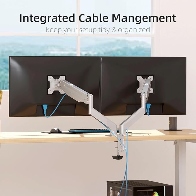 Suptek Dual Monitor Mount Stand-Height Adjustable Gas Spring Monitor Arm Desk Mount for 2 Computer Screens 17 to 27 inches - Each Arm Holds up to 13.2lbs,Silver(MD8SPS)