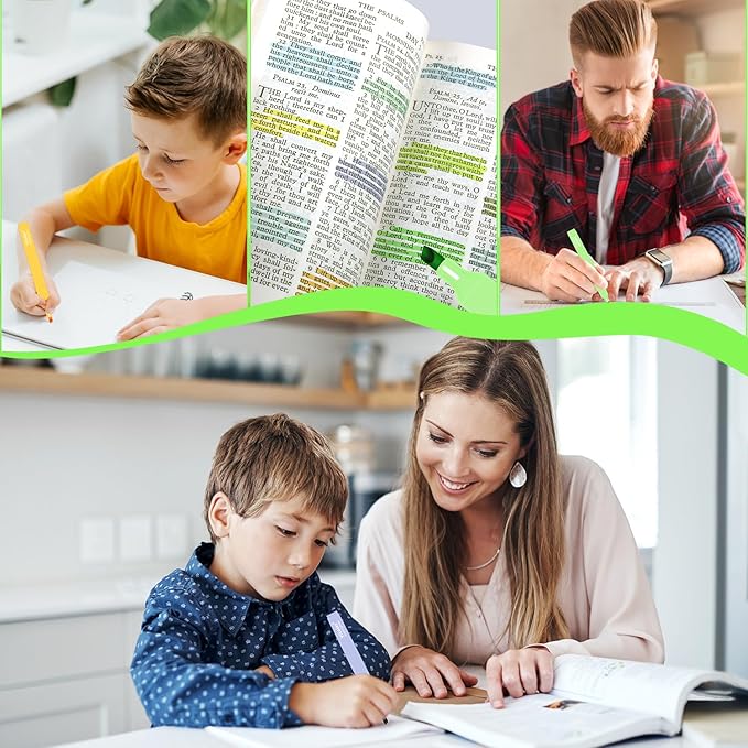 - 【Quick Dry & No Bleed】:These bible highlighters are made with soft chisel tips for smooth writing without paper breakage on general papers.If you are writing on very thin paper, it is recommended that you write lightly.The ink is water-based and ensures fast drying.Don't worry about the ink getting your hands or sleeves dirty.