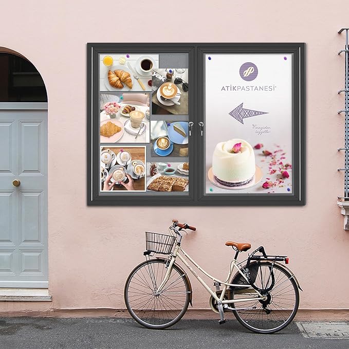 - Stylish Functionality: Elevate your communication efforts with our sleek enclosed bulletin board. Whether showcasing important notices, upcoming events, or achievements, its visually appealing design captures attention while ensuring effective information dissemination in a sophisticated manner.