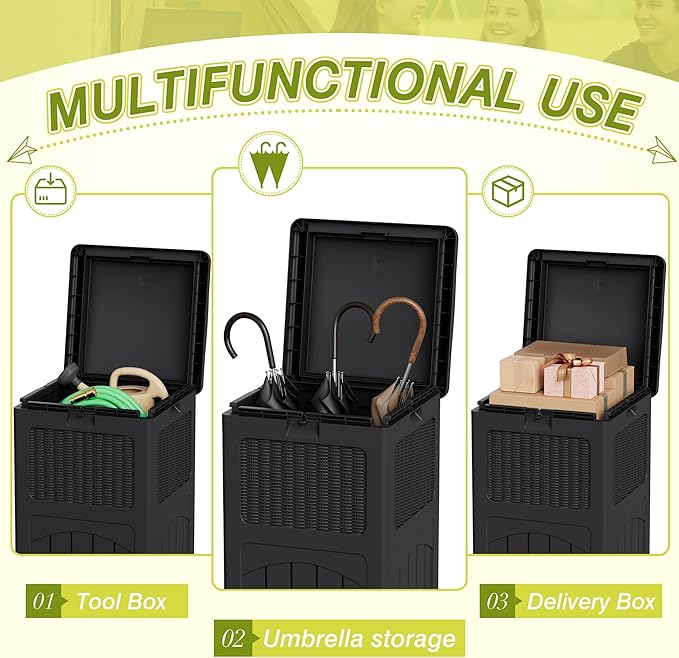 - Multi-Functional Use: This resin outdoor trash can withstand the effects of various outdoor elements, preventing the entry of water and dust. It can also be used as an outdoor storage bin, suitable for patio, swimming pool and other multi-scenario use needs.