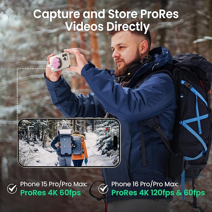 - Capture and Store ProRes Videos Directly: For iPhone 15 Pro/Pro Max or iPhone 16 Pro/Pro Max users, this external SSD is a game-changer. You can record 4K 60p ProRes or 4K 120p ProRes videos directly onto the drive, freeing up space on your phone and ensuring your high-res content is securely stored. Itβs ideal for mobile filmmakers or photography enthusiasts looking for smooth, uninterrupted recording