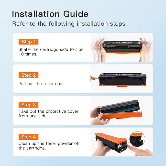 - Package contents: 1x 054H toner cartridge Black, 1x 054H toner cartridge Cyan, 1x 054H toner cartridge Magenta, 1x 054H toner cartridge Yellow, (Total 4 Pack of 054 054H toner cartridge replacement for Canon 054H), 1 x User Guide,