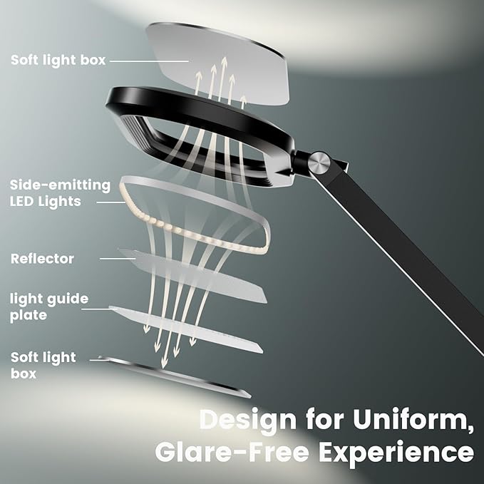 - POWERFUL & SOFT LIGHT: With 126 LED beads, we've combined fluorescent diffuser film and edge-lit technology to create a bright, soft and even light. Not only that, but our led desk lamps boast impressive specifications such as CRI β₯ 95, colour saturation Rg β₯ 95 and colour fidelity Rf β₯ 98, mimicking the effect of natural sunlight. This translates to vibrant color, true-to-life hues, enhanced reading comfort and reduced eye strain. Perfect for reading, drawing, writing, laptop video calls, workbench and home office setups