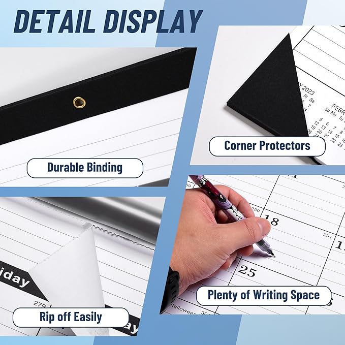 - 🎓CALENDARS--This large desk calendar 2025-2026 the first layer of PVC protective film can keep the large desk calendar 2025 clean and prevent the calendar from being damaged by overturned water or coffee.Classroom calendar are easy-to-tear cutting lines can be easily torn off.With two black protective corners on the bottom to prevent the big calendar from being damaged.