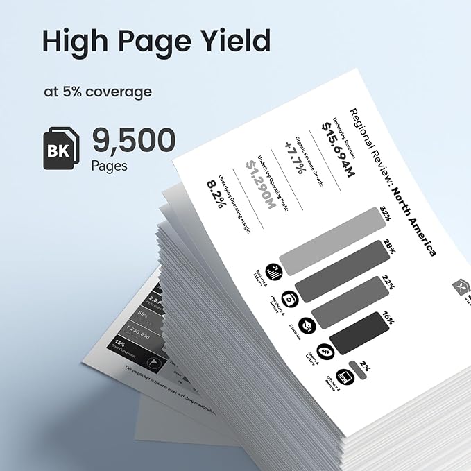 - High Page Yield: Up to 9,500 pages per 148X black cartridge at 5% coverage on letter/a4
