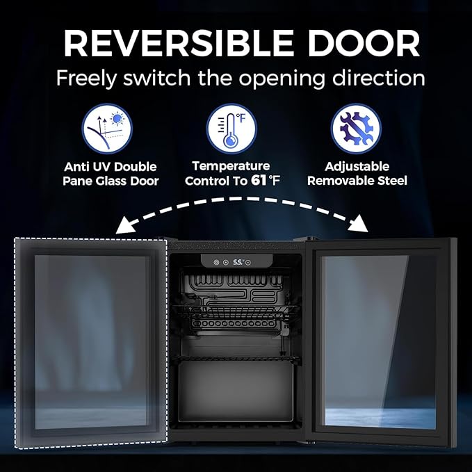 - Superior Cooling Power: Our beverage refrigerator with glass door is equipped with a high-performance compressor that provides constant and even cooling. The glass door ensures airtight sealing to keep cold air inside and maintain your drinks at the ideal temperature at all times.