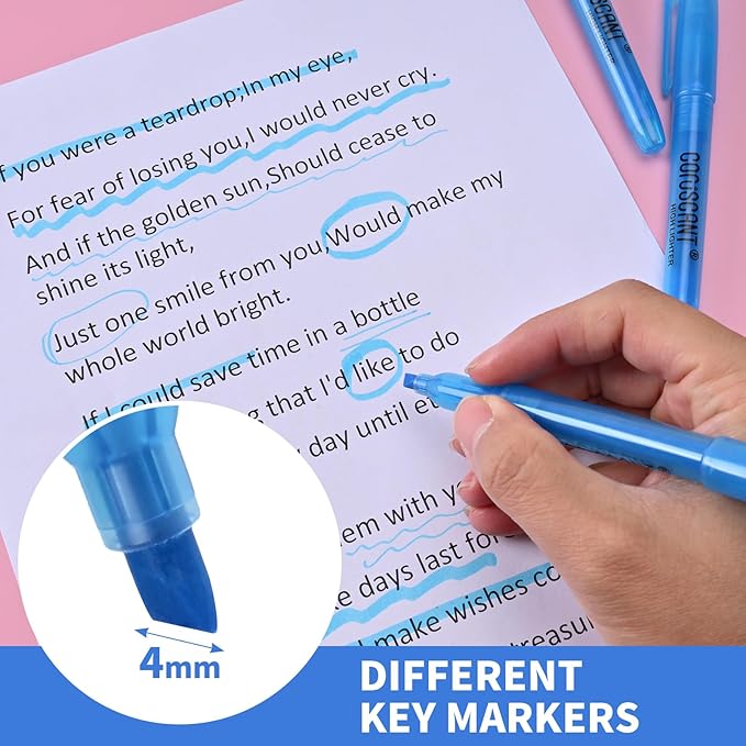 - NO BLEED: The blue highlighter is designed with a no-bleed feature, ensuring that the ink does not seep through the paper, providing clean and neat without damaging the page