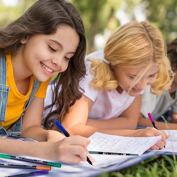 Dual Markers Brush Pens, 100 Coloring Pens and Fine Tips – Premium Art Supplies for Kids & Adults, Perfect for Coloring Books, Hand Lettering, Calligraphy, and Drawing