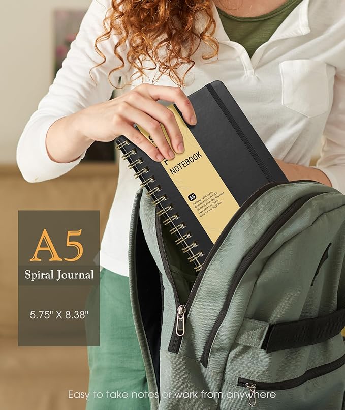 - 【A5 Journal with 100 GSM High-Quality Paper】 Crafted from 100 GSM thick ink-friendly paper, our notebook prevents ink bleed-through and ghosting. It accommodates various pens, including ballpoint, gel, and fountain pens. A5 size 5.75" x 8.38", perfect size for carrying around or put into your bag or purse.