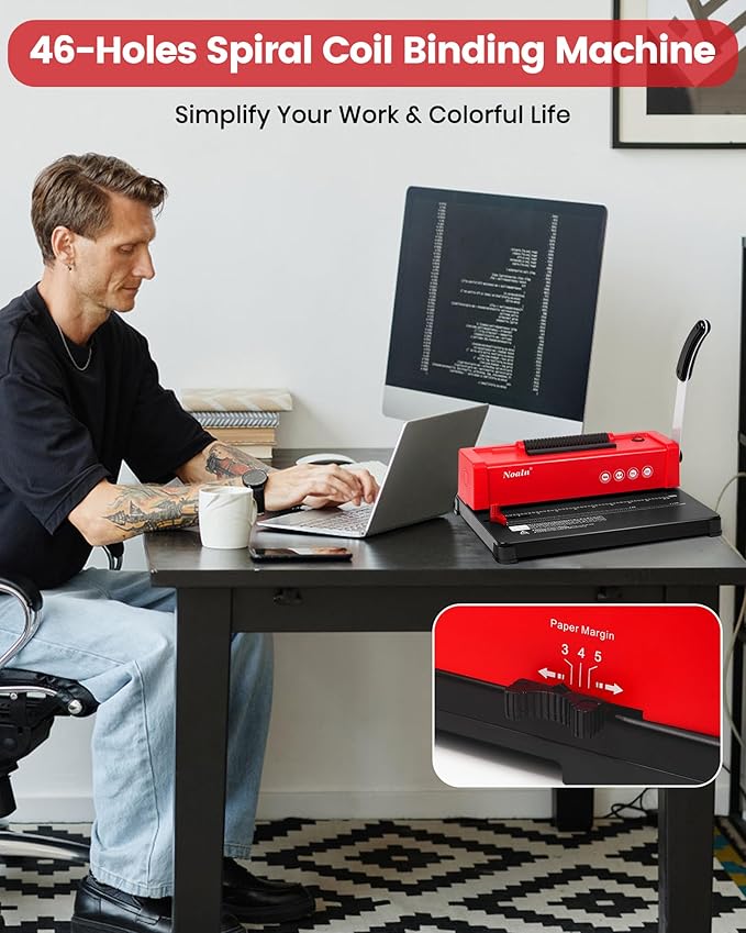- 💯【Multiple Bindings in One Machine !】Noaln Upgraded Spiral Coil Binding Machine with Electric Coil Inserter helps to create professional-looking bound books in the office or at home quickly and easily. It's Vibrant Christmas Red look can be adapted to any home style for a touch of style and luxury. Make Documents, Contracts, Materials/Assignments, Teaching Books, Picture Books/Diary, Travel Tips/Notebooks, Photo Albums, Recipes, etc. It can also be a practical and educational gift!