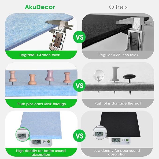 - 【Thickened Cork Boards】Our cork board alternatives have higher thickness (25% thicker) and density (35% denser) than traditional cork boards, which means better durability and sound absorption. It prevents push pins from sticking through the felt board and damaging the wall.