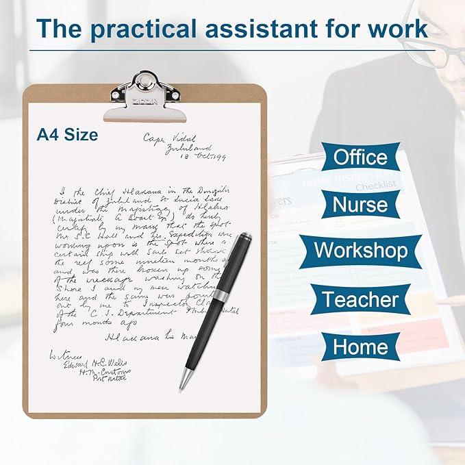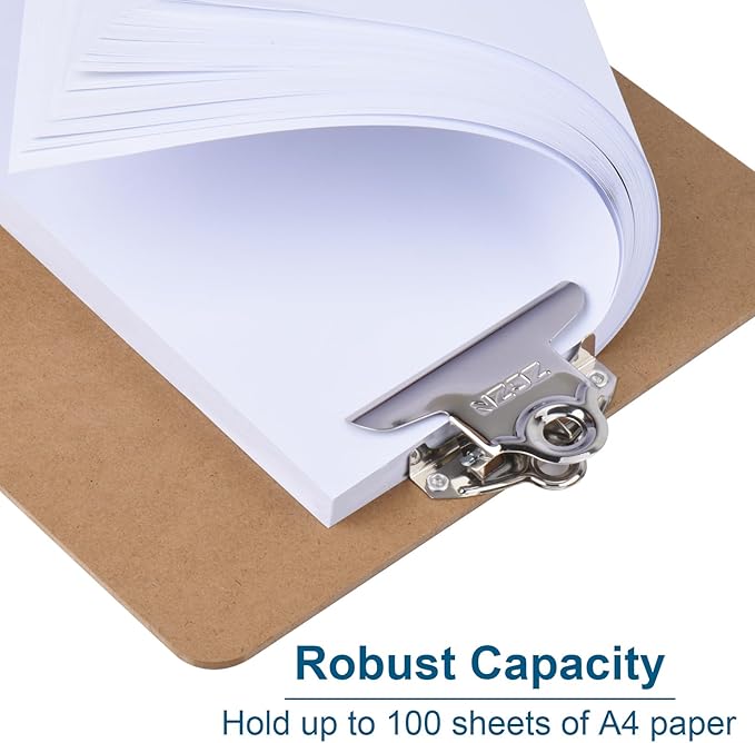 - Sturdy Clip: The metal clip of wooden clipboard is exceptionally robust, able to hold up to 120 sheets of A4 paper firmly. The clip has a polished chrome finish and the material is rust-resistant as well as durable