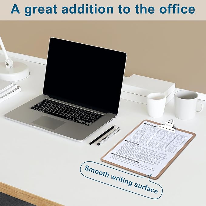 - Smooth Writing Surface:The clip boards 9x12.5 inch is made of high quality wood fiber, very lightweight and has a smooth and flat surface for writing, the rounded corners and smooth edges are more safer for writing and carry