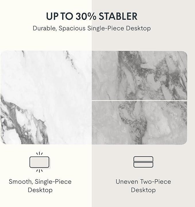 - AMPLE WHOLE-PIECE DESKTOP: With its whole-piece 1β eco-friendly desktop, this standing desk provides plenty of room for your computer setup, documents, and accessories, creating a well-organized and productive work environment. Due to hand measurements, desktop dimensions may vary slightly by 0 to 1β.