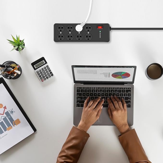 - Multi-Outlet Power Board:8 AC outlets with 1.6 inches of space between them are easy to use for a variety of devices to meet more power needs in your daily work. No need to worry about crowded location, rational use of outlet space, suitable for home, office, store, game room and so on.