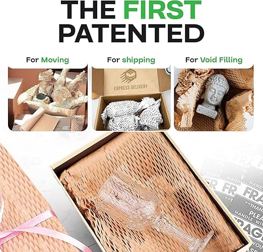 - 【THE ONLY PROVEN SLIT PAPER TECHNOLOGY】 The HexcelWrap produced by the slit paper technology was developed over 30 years ago, and it's been proven to be an effective packing material. Due to the engineered hexagonal cells, this honeycomb wrapping expands as you wrap your items, creating an interlocking web trap. The resulting three-dimensional cushioning product (paper) replaces traditional plastic, bubble, and other paper-based packaging products in terms of properties and efficiency