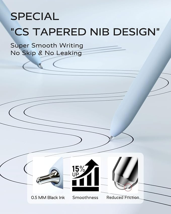 - [ 0.5mm Quick-Drying Ink: ] These retractable roller ball gel pens feature reliable ink with fade-resistant ink or thereβs no need to worry about getting ink on your hands or desk, as it wonβt fade, bleed, or smudge; the rollerball ink dries quickly that help you keep work neat and organized.Note: After using the gel pen, it is suggested to lay the pen flat or the nib face up. This helps protect the pen tip.